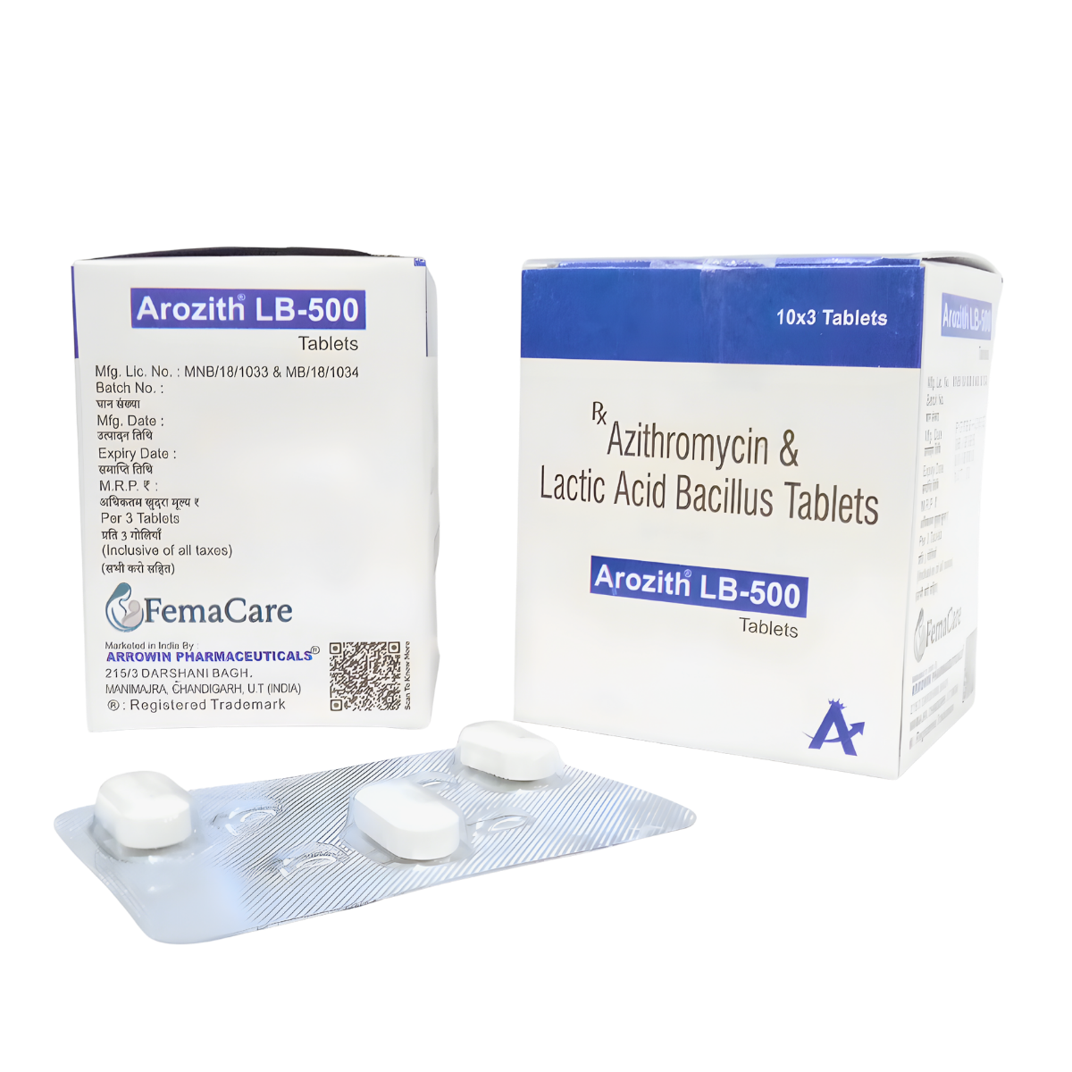 AROZITH LB-500 Tablets is a sophisticated broad-spectrum antibiotic formulation combining Azithromycin 500mg with the gastro-protective benefits of Lactic Acid Bacillus (60 Million Spores). This synergistic blend is engineered to treat a wide range of bacterial infections, including respiratory tract infections, skin and soft tissue infections, and urogenital disorders, while actively maintaining healthy gut flora.
